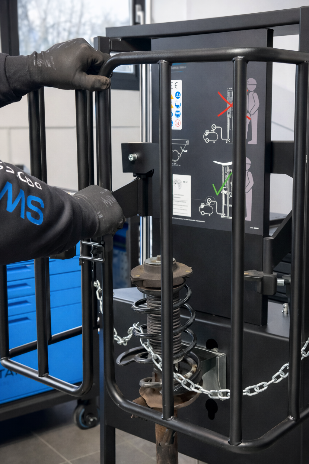 - Sicherheitskäfig mit Schnappverschluss und automatischer Öffnung garantiert komfortables und sicheres Arbeiten